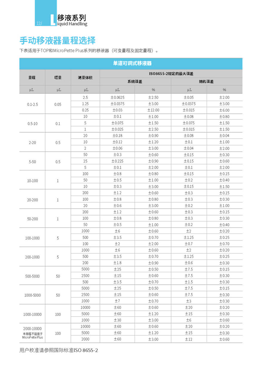 - 精確的分液,每支移液器都遵照EN/ISO8655標準進(jìn)行校準