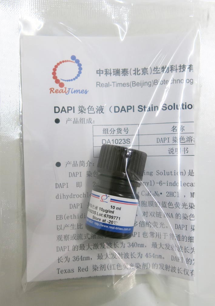 本DAPI染色液為即用型,濃度為10μg/ml,可以直接用于固定細胞或組織的細胞核染色。