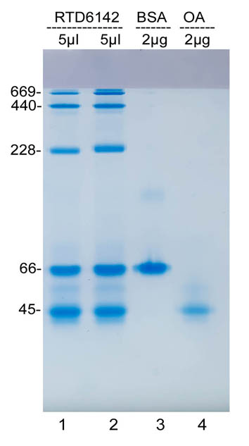 Product: RTD6142 高分子量非變性電泳蛋白質(zhì)Marker II(45-669 kD)