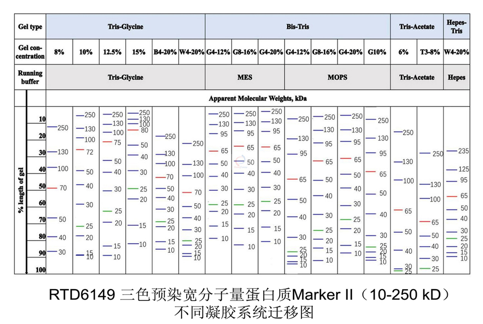 Marker: RTD6149 三色預染寬分子量蛋白質(zhì)Marker II(10-250 kD)