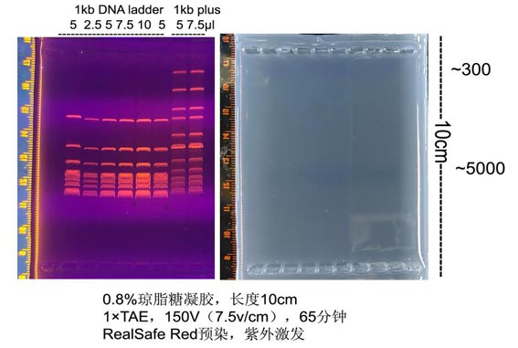 2. 建議電泳條件:凝膠濃度為0.8-1.0%,凝膠長(cháng)度10